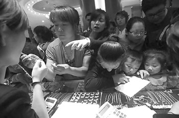 | 这是发生在2013年6月11日的一幕,济南泉城路一金店端午节让利促销,涌来近万人抢购(资料片)。黄金熊市周年祭里,围绕着金价起伏的一幕幕大戏,交学费的不光“中国大妈”。 |