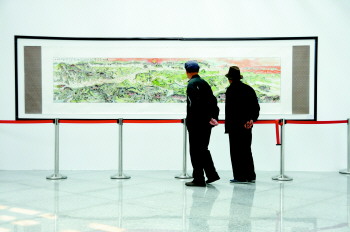 4月22日上午9点,王文健匆匆赶到鲁台会展中心后就直奔向二楼,这天是第四届中国画节展览的最后一天,他差一点就错过了。五天来,会展中心内游客络绎不绝,王文健也成为了前来参观的45万人中的一员。五天来,络绎不绝的参观人群似乎验证了中国文联副主席、中国美协主席刘大为的有关潍坊的预言,在4月18日的开幕式上,作为应邀嘉宾,他曾在致辞中说,中国画节已经成为一张亮丽的文化名片,作为一名潍坊人,他深感自豪。 再往前一年,2013年4月21日,在第三届中国画节开幕式上,当潍坊市市长刘曙光和中国画学会会长郭怡孮揭开“中国画都 山东潍坊”牌匾上的红纱那一刻,昭示着潍坊已成中国画“国标”,从此,“中国画都”与“世界风筝都”一起,成为潍坊两张闪亮的城市名片。
