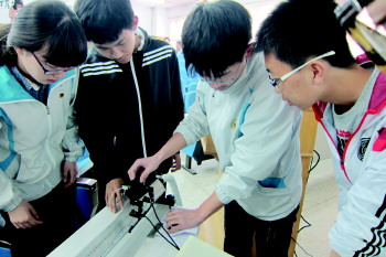 | 23日,在翻转课堂中,学生在做课本以外的实验。 |