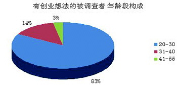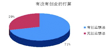 《日照创业白皮书》经过一个民间调查团队两个月的努力日前完成,调查共发放调查问卷1004份,主要反应日照市城区创业者或意向创业者的需求情况。20-30岁年龄段想创业热情最高。 被调查者有没有创业的打算 图表分析:71%的未创业者都有创业的打算,29%的人没有创业打算。 白皮书历经两个月调查完成 在国家大力扶持创业及就业难等多方面因素的综合影响下,越来越多的人们选择自主创业或者为创业做一些前期准备。 2014年2月-3月,《日照创业白皮书》经过调查团队两个月的努力完成,调查范围以日照市兴业王府大街电子科技城、太阳城及利华商业街的业主及中青年,调查人数按日照市市区人口3%的比例抽样调查。 白皮书主要反应日照市城区创业者或意向创业者的需求情况,按调查对象分普通人群和创业者两个模块,采用问卷调查方式进行。本次调查共发放调查问卷1004份,其中,已创业者500份,未创业者504份,共回收1004份,有效回收率为100%。 “此次调查是日照市首次大规模针对创业者需求进行的调查,通过对调查问卷的整理分析,发现意向创业者和初创企业者的需求,真实地反应出本地创业青年的真实创业意愿和创业培训需求,对进一步做好创业服务和创业辅导提供了数据支持。”一位参与调查的中智培训学校成员介绍。
