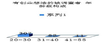 有创业想法的被调查者年龄段构成 图表分析:在年龄段构成上,20-30周岁年龄段共有307人,占到有创业想法总人数的83%。 接受调查未创业者群体七成想创业 在接受调查的未创业者群体中,71%的未创业者都有创业的打算。在有创业想法的370人中,男性共有199人,女性有171人,分别约占到有创业想法总人数比重的54%及46%。在学历构成方面,大专及以上学历者共有249人,占到有创业想法总人数的67%。在年龄段构成上,20-30周岁年龄段共有307人,占到有创业想法总人数的83%。 综上可知,在学历构成方面,无论是创业者还是未创业者,都以大专及以上学历者居多,其次是高中学历者。在年龄构成上,创业者以31-40周岁年龄段人数最多,其次是41-55周岁年龄段,最后是20-30周岁年龄段。而对于未创业者,20-30周岁年龄段最多。 经以上图表及数据分析,针对未创业者,建议开设如何发现合适创业项目的课程、市场营销课程及创业者素质能力、如何组建团队及商业实战课程;针对创业者,开设企业市场营销、企业战略规划、人才招育用留方面的课程。面对同样的资金短缺问题,无论是创业者还是未创业者,都可以开设如何管理资金方面的课程或者是理财方面的相关课程。