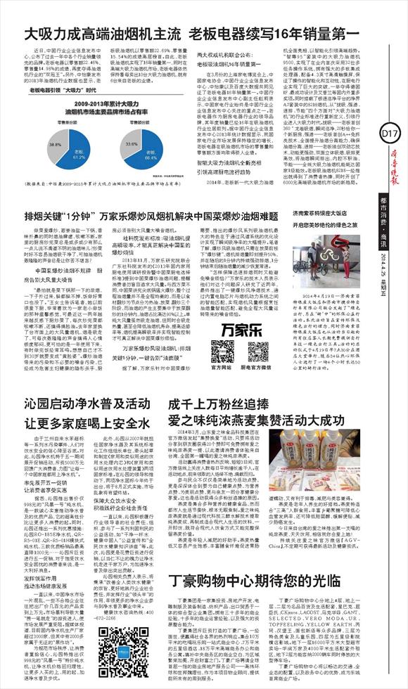 大吸力成高端油烟机主流 老板电器续写16年销量第一