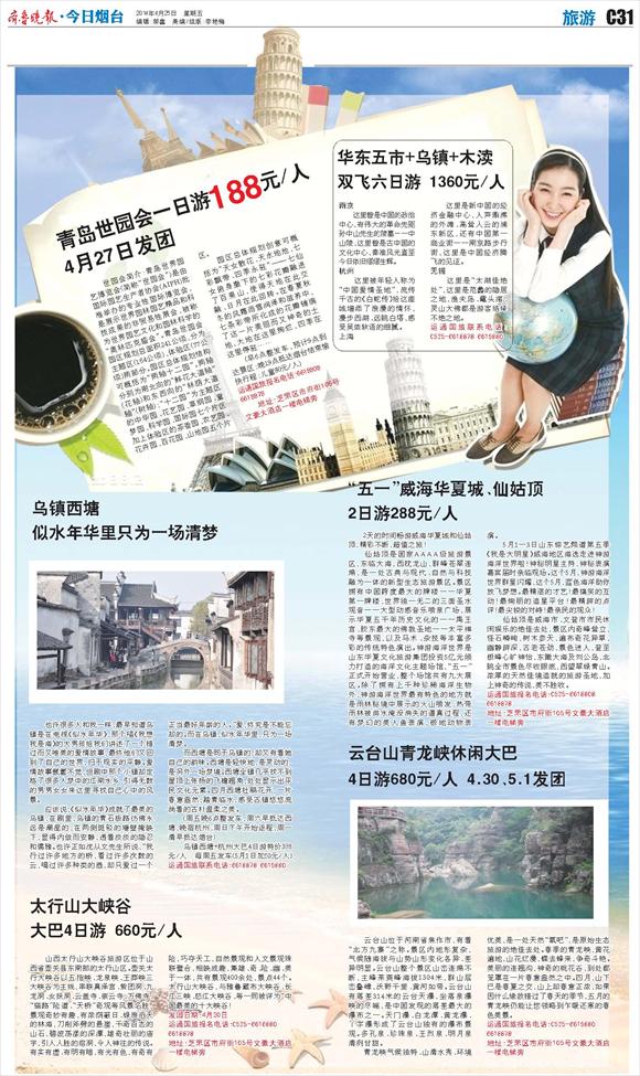 云台山青龙峡休闲大巴4日游680元/人 4.30、5.1发团