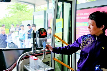 5月1日起,泰安市民用IC卡乘公交,一小时内换乘,将享免费或优惠。换乘车辆票价低于或等于首次票价的,实行免费换乘;换乘车辆票价高于首次票价的,只需支付差价。届时,泰安将成为全省首个实现一小时内公交IC卡免费、优惠换乘的城市。图为25日下午,泰安一市民刷卡乘坐39路公交车。 本报记者 王世腾 摄