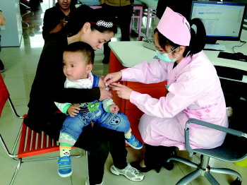 | 25日是我国第29个儿童预防接种宣传日,宣传主题是“接种疫苗,保障健康”。图为济南章丘一个孩子在接种疫苗。