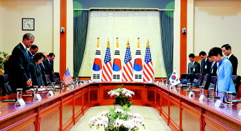本报讯 韩国总统朴槿惠25日下午在青瓦台同到访的美国总统奥巴马举行会谈。会谈开始前,双方为“岁月”号客轮沉没事故遇难者默哀。这是奥巴马第四次访韩,也是朴槿惠政府成立后首次访韩,访韩次数居历届美国总统之首。 韩美商定,重新考虑美国向韩国移交战时指挥权的时间。战时作战指挥权是指在朝鲜半岛“有事”时指挥军方作战的权力。韩国军方的作战权分为平时作战指挥权和战时作战指挥权,其中平时作战指挥权由韩国联合参谋本部长行使,而战时作战指挥权则由驻韩美军司令行使。 至于朝核问题,韩美一致认为,希望两国与国际社会一道,努力实现全面、可验证、不可逆转的无核化。韩美两国一致呼吁朝鲜立即中断违背国际义务的一切“挑衅”。奥巴马对朴槿惠在“德累斯顿宣言”中提出的朝鲜半岛和平统一构想表示了支持。 朴槿惠在会谈后举行的联合记者会上表示,要想修复韩日关系,日本必须在解决“慰安妇”问题上展现诚意。 奥巴马在记者会上说,“慰安妇”问题是严重侵犯人权的问题,“慰安妇”的声音应当被倾听和尊重,日本应面对历史,解决该问题。同时,他希望韩日两国基于共同利益考虑,既要回顾历史,又要面向未来,早日找到解决历史问题的方法。 据中新网、新华社