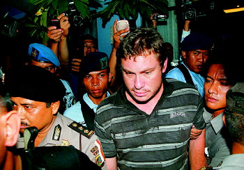 | 25日,在印尼巴厘岛登巴萨机场,企图硬闯客机驾驶舱的醉酒乘客克里斯托弗被逮捕。新华/路透