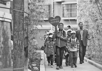 | ◥放学后,小学生们在志愿者带领下去四点半课堂。