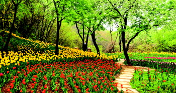 | 本月初,红叶谷数十万株郁金香绽放,清香满山谷。 本报记者 周青先 摄 |
