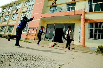 | 教学点内,孟老师正在为两个孩子上语文课。 |  | “一对一,面对面”。 |  | 虽然只有一个人坚守教学点,但孟老师仍十分乐观。 |  | 课间陪俩学生跳绳、游戏。 |