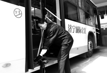 一天来回4趟,她要打扫车内8次 28日上午10时15分,C606嘉祥中线的驾驶员尚晓娟达到汽车北站的停车场,车停稳之后,她来不及舒展在驾驶座上僵持了75分钟的身体,便起身便拿起一旁的拖把开始打扫车内卫生。 拿着拖把弯着腰,尚晓娟边后退边拖地,连一丝小缝隙都不放过,甚至直接用手抓住拖把头擦拭。“我就是看不惯车内有一点脏的地方,打扫干净了,乘客坐在干净的车厢内,心情也会好一些。”尚晓娟说,嘉祥中线的乘客特别多,一天要跑4个来回,每次到达目的地她都要打扫一遍。“每一趟之间驾驶员有20分钟休息时间,打扫完卫生也就所剩无几了。”城际公交客运科科长马振刚告诉记者。 除了车厢内的垃圾和尘土,玻璃上的灰尘尚晓娟也不放过,采访中,尚晓娟手里一直拿着抹布,看到玻璃上有灰尘,她就会仔细擦干净。此外,每天晚上收车前,她还要花一个多小时将车内外仔细打扫一遍,连轮胎都会冲刷几遍,“车就像自己的家,打扫干净了才舒服,因为爱干净,很多同事都开玩笑说我有洁癖。”尚晓娟笑着说。
