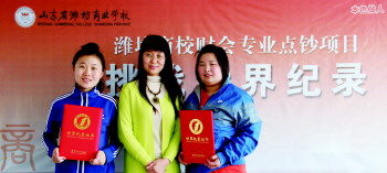 文/本报记者 李涛 片/本报记者 孙国祥 一台机器的点钞速度是多少?每分钟200-600张。30秒,单指单张清点专用券228张,多指多张清点专用券406张,准确率100%。近日,潍坊商校的杜巧和李金峰同学,刷新了“点钞达人”陶萍创造的30秒内单指单张点钞190张、多指多张点钞接近400张的世界纪录,成为新的世界纪录创造者。而在荣誉取得的背后,也倾注着两位90后女孩血和泪的艰辛付出。 速度比点钞机还快 正常情况下,点钞机8秒钟清点100张纸币;而100张专用券在潍坊商校会计专业四年级的李金峰手中,用时6秒钟多一点就能清点完毕。 24日,记者见到多指多张点钞世界纪录创造者李金峰时,她与师妹、单指单张点钞世界纪录创造者杜巧正在学校实训室内指导一二年级的同学进行点钞和传票训练。 今年20岁的李金峰和19岁的杜巧,一个家住潍城区,一个家住坊子区;一个就读会计专业四年级,一个就读三年级,过硬的基本功,让两人相识于学校校训队。 “向世界纪录发起挑战的想法由来已久。”李金峰和杜巧的教练魏亚丽告诉记者,学校学生连续三年包揽国家会计技能大赛前两名。早在2012年国赛总结大会的时候,裁判长在讲话时指出选手们的水平已接近世界纪录创造者的水平。而世界纪录到底是多少,引起了学校老师和比赛选手们的好奇。通过上网查阅,她们了解到世界纪录是由“点钞达人”陶萍创造的,30秒内单指单张点钞190张、多指多张点钞接近400张。 而此时,潍坊商校学生的点钞速度已经远远超越“点钞达人”陶萍,向点钞达人发起挑战的念头跃上大家心头。2013年,学校把精力集中到国家技能大赛上,向世界纪录挑战的计划暂时搁置。 今年国家取消全国会计技能大赛,向世界纪录发起挑战的计划重新被提上日程。3月21日,该校5名会计专业学生同时向世界上30秒单指点钞和30秒多指点钞两项世界记录发起挑战。最终,杜巧同学在30秒内用单指单张的方法清点专用券228张,准确率100%;李金峰同学用多指多张的方法清点专用券406张,准确率100%,挑战成功。如今,世界纪录协会颁发的证书已经送达两位学生手中。 平常还能比纪录更快 在采访过程中,令记者意想不到的是,在挑战世界纪录之前,李金峰由原来的主攻会计实务转到手工帐处理专业方向。在一年多时间里,李金峰停止了点钞项目的学习与训练。 在挑战前20多天的时候,学校宣布要向世界纪录发起挑战。李金峰抱着试试看的心态报名参加挑战。 而在随后的20多天时间里,李金峰与同学的训练强度也远远低于国赛。“平均每天玩着训练七八个小时;准备国赛的时候,大家都会集训,每天差不多都熬夜到很晚;准备挑战赛基本上没熬过夜,心情也没那么紧张。” 魏亚丽告诉记者,杜巧单指点钞30秒内最快的时候能清点专用券234张。在挑战结束后的30秒视频录制过程中,杜巧清点了232张,比自己创造的世界纪录228张又多了4张。李金峰多指点钞最快的时候则能够清点438张。 “没发挥好,正常水平应该是410张以上。”提及当日成绩,李金峰多少有点遗憾。但很快脸上又布满阳光。“我把证书拿回家给爸爸妈妈了,让他们也高兴一下。” 据了解,在发起挑战之前,李金峰与杜巧已然是学校明星人物了。在2013年的国赛手工帐比赛中,两人都获得三等奖;在会计实务比赛市赛和省赛中,获得一等奖。 纱布、创可贴随身携带 点钞主要靠手、腕、肘、臂配合操作,为减轻腕、肘、臂部的劳动强度,大家都会尽量借助于桌子来减轻劳动强度。如运用手指式点钞法时,将左手和肘部放在桌上,右手肘部也放在桌上,而手腕稍抬起,就比较省力。 也正是于此,选手们在练习过程中,手指与桌面接触的过程中磨起茧子也在所难免。 “流血都时有发生,手上起茧子这都不算事。”魏亚丽告诉记者,学生们清点完一定数量的专用券,都会用捆扎条捆绑起来。而在捆绑过程中,手指被捆扎条划伤的情况时有发生。“每个学生的课桌洞里或者书包里都时刻准备着纱布和创可贴,手指被划伤了简单处理一下继续训练。” “点钞的谁没流过点血啊。”记者看到,在李金峰的右手中指处留有一道长长的疤痕。 “很多时候旧伤还没好,新的伤口就会出现;点钞专用券和捆扎条上留有血迹很正常。”坐在李金峰一边的杜巧插言。 手指被划伤过多少次,李金峰和杜巧两个人都记不清了。 魏亚丽告诉记者,有时候为了测试学生们的点钞水平,学校会不定期组织进行五分钟测试。一些学生在测试过程中,手指被捆扎条划伤,但大家基本上是坚持到比赛结束才处理伤口。 “手指滴着血,坚持清点专用券的现象很常见。”魏亚丽表示,她从来没有要求学生受伤后坚持完成测试,有时还会提醒大家处理好伤口再训练,毕竟一次日常测试也无所谓,但学生们都会选择坚持,从来没有一个学生因为划伤手指而停止测试。 时下很多爱美女孩都会留着长长的指甲,涂上颜色鲜艳的指甲油。而因为专业学习要求,大家的指甲都修剪得很短。“指甲长了会影响点钞速度的,这样也挺好的,已经习惯了。”杜巧和李金峰话语中显得很坦然。 魏亚丽告诉记者,在学习和训练过程中,学生们的成绩都会有一个波动期,有时成绩突然达到一个高峰,猛然间又跌至谷底,水平还不及一般学生。学生们的心情也会跟着起伏。 “感觉技不如人呗,心里很难过,感觉自己不争气,有时候会躲到一个角落里哭;给自己打气说我能行