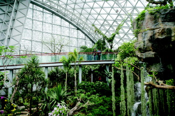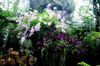| 植物馆里奇花异草遍地。 |  | 千年荔枝树长出新枝。 |  | 见血封喉树引人注目。 |  | 植物馆里的空谷幽兰。 |