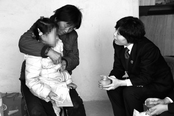 | 日照市中级人民法院法官细心询问宝宝的学习、生活情况。 本报通讯员 张京常 摄 |