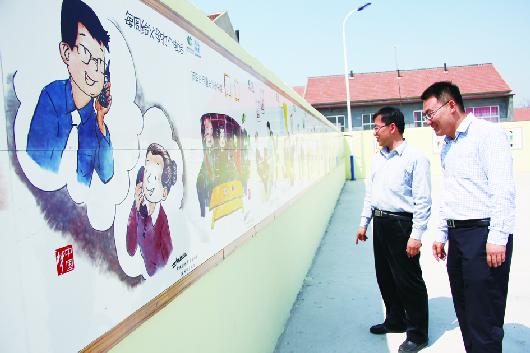 | 滨州市委副书记、市长崔洪刚(左一)与村民一起种树,绿化村庄。 (资料图) |  | 史旭东(右)和肖国松(左)告诉记者,墙上贴满了宣传画的便民中心是大家平时最喜欢来的地方。 本报记者 王晓霜 摄 |  | “村里环境这么好,我也不打算去县城买房子了。”村民路德明站在自家盖的二层小楼前面笑着说。 本报记者 王晓霜 摄 |  | 肉牛养殖场已完成主体工程。 |