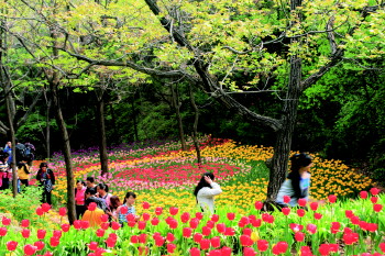 春雨贵如油,郁金香花被小雨滋润过后,更显艳丽、高雅、富有生机。听,那美妙的旋律动人心弦,每个音符似在花丛中欢快地跳跃,与花儿共舞,与鸟儿合奏。蝴蝶偶尔也会来此凑凑热闹,格外惹人喜爱。济南红叶谷的郁金香美得令人窒息、美得让人醉。如果五一小长假,您还在犹豫去哪儿,就让充满小清新的红叶谷告诉您吧。据了解,为丰富广大游客五一小长假出游,景区特安排专业演员在郁金香花主展地演出。 (王茜)