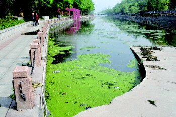 本报见习记者 刘光斌 进入3月份以来,淄博玉龙河张店段、高新技术开发区段,渐渐长出一种绿色水藻——水绵;进入4月份以来,水绵的生长速度加快,部分河段甚至已无法看到水底。对此,张店区环卫局与高新技术开发区水务处分别于近日启动临时抢救机制,组织工作人员进行打捞。