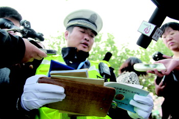 本报记者 孙慧瑶 每天早上,张店交警大队四中队中队长刘鹏都会出现在张店城区道路上,在公安交通管理工作的第一线,他工作作风严谨细致,敢管善管,严格依法行政,连续10年工作考核位居全支队前列,无一起被复议投诉。 多方查询 联系酒驾司机家属 2008年11月的一次夜查行动中,刘鹏查处了一起醉酒驾驶违法行为。因当事人崔某处于醉酒状态,意识不清,刘鹏先期对其采取约束酒醒强制措施,并通过崔某含糊不清的表述,经多方查询,最终联系到了崔某的妻子。 夜查行动结束后,刘鹏主动留下来陪驾驶人崔某。近两个小时后,崔某的妻子赶了过来,看到寒夜中,刘鹏陪着其丈夫一同在等待的情景,感动不已。鉴于崔某饮酒过量,为防止发生意外,刘鹏让崔某的妻子先把崔某带回家,第二天再到大队接受处理。 “警察同志,不好意思,给你添麻烦了,更要谢谢你,是你让我明白了驾驶人酒驾的危险。”第二天崔某主动到大队接受处理,从醉酒中醒过来的崔某感激又不好意思地向刘鹏说。 堵点不通不撤岗 路面不畅不撤岗 刘鹏所在中队辖区道路新村路与世纪路是贯穿张店东西和南北的主干线,联接道路多、沿线单位多、学校多、公交线路多,车流量大,路面情况复杂,日常疏导任务艰巨。怎样把路面秩序管好,成为刘鹏一直以来努力思考和探索的主要问题。 自2009年3月份以来,市政府相继对华光路、西五路等城区主要道路进行升级改造,大量交通流改道新村路和世纪路,给本已拥挤的中心城区增加了更大的交通压力。为更加科学、便捷的做好道路规划,在规划期间,每天刘鹏总是第一个来,最后一个走,坚守岗位疏导交通,做到了堵点不通不撤岗、路面不畅不撤岗。 “我当时就是想怎么能让在信号灯配时、细化辖区路段标志等方面做到最科学合理,使通行和拥堵时间最小化。”刘鹏告诉记者,通过完善和细化辖区路段禁令标志和诱导标志、优化信号灯配置、向社会发布调流信息、主动到沿线单位进行走访等一系列措施,确保了辖区道路拥而不堵。新村路、世纪路等主要路段的平均时速由预计的5公里/小时以下提高到了10公里/小时以上。