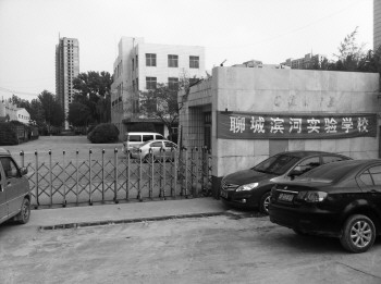 | 聊城滨河实验学校的校牌由于还没来得及做,临时用一印有“聊城滨河实验学校”的横幅替代。