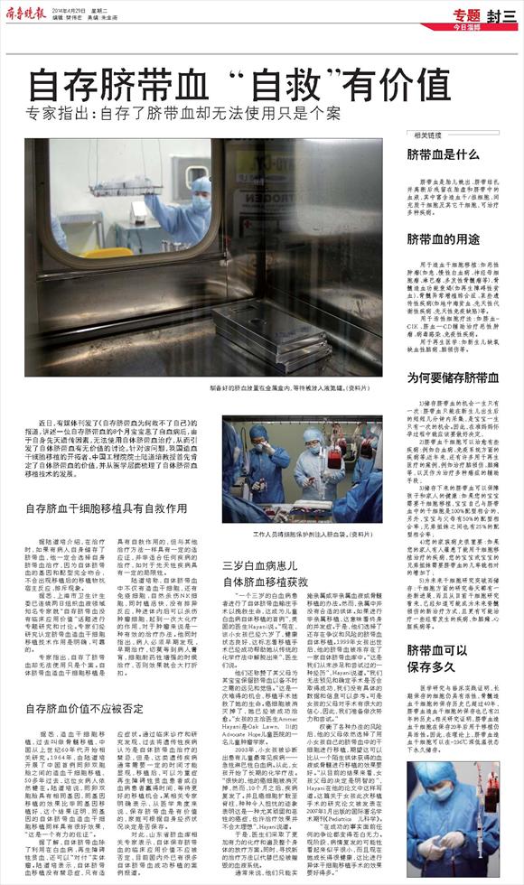 自存脐带血 “自救”有价值