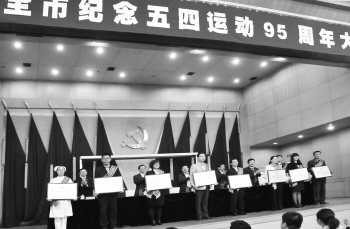 4月29日,纪念五四运动95周年大会上对五四红旗单位等进行了表彰。 本报记者 邹俊美 摄