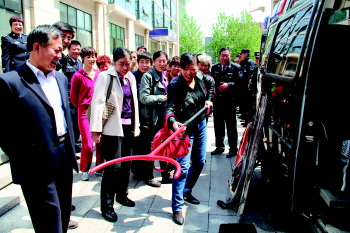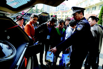民警向市民介绍警车上的装备。刘腾腾 摄
