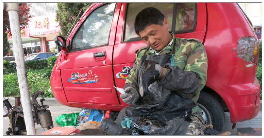 “有时候活多的时候是挺累,夏天我一般一出摊就干十几个小时。但像我这样行动不便又没有文化的人,能靠着一双手养活自己,就挺知足的了。顾客们也都很照顾我的生意,路过的熟人也经常坐下来跟我聊聊天,日子过得很充实。”蔺兴水乐呵呵地说。“虽然鞋吧对我的生意产生了一点影响,但来修鞋摊的中老年顾客还是很多的,年轻人也经常过来修修背包的拉链,鞋开胶了就找我粘粘,一点小问题来我这里修比返厂省事儿多了。”在蔺兴水看来,把生意做好最重要的是诚信经营,修鞋用料货真价实,就能留住顾客。