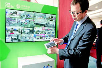 29日,在威海移动中心营业厅4G演示厅,工作人员演示在4G网络下,视频监控画面。 记者 王帅 摄