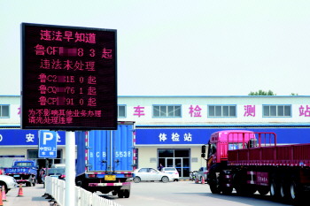 这块“违法早知道”提示牌设置在外检区门口处,大概有三米高,两平米左右,红字黑底的提示非常醒目,只要进门车辆经过就可以在提示牌上显示车辆有无违法状态,提醒车主审车前及时处理违章,避免了长时间等待审车后发现有违章,再重新处理、重新排队。张店交警大队车管所所长李军表示,在党的群众路线活动中,车管所积极寻求更加贴近群众的服务方式,根据支队《践行群众路线便民服务十条措施》的要求,继推出“车管业务导办明白纸”、“阶梯式”审车之后,最近又在车管所业务厅增加业务导办查询台,外检区设立“违法早知道”提示牌,以更好的为群众服务。他同时提醒办理审车业务的车主,审车前还可通过淄博公安交警网、“张店交警”微信公众平台、以及车管业务大厅和社区交管服务站查询车辆违章情况。