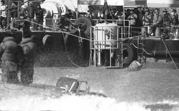 | ▲韩国“岁月”号失事海域4月30日中午进入水流平缓期,韩方在该时段投入单人潜水运载器潜水钟进行搜救。