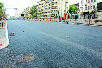 4月29日,已经铺好沥青的和平路西段。目前,和平路拓宽改造工程已接近尾声,预计“五一”后将通公交车。 本报记者 李飞 摄