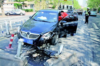 4月30日13时50分许,一辆中华轿车在新威路雅苑宾馆附近,发生交通事故。据在场民警介绍,该车沿新威路由南向北行驶,由于疲劳驾驶,车辆撞向护栏发生事故,所幸无人伤亡。