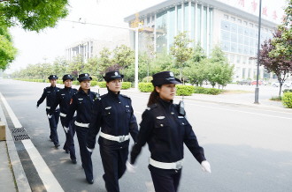 本报滕州4月30日讯(见习记者 孙越) 30日上午,在滕州市市政广场巡逻站内,记者见到一批女巡警。自2012年滕州市建立女子巡警以来,她们以飒爽的英姿、亲和的笑容、文明的举止巡逻在滕州的大街小巷,成为滕州市一道靓丽的风景线。 记者见到她们,第一印象是她们充满朝气的脸上,却饱含着威严,11名队员之中,有半数以上都来自外地,有不少是“90后”也是独生子女,在记者询问她们是否能面对这份职业时,她们都异口同声的说:“我们虽为女性,但我们不会辜负我们的职责。”滕州市巡警大队队长杨慧向记者介绍到,她们其中年纪最小的只有22岁,分别来自济南、威海、郑州等地。 女子巡警队的执勤点设在市政广场,她们肩负着巡逻防范、打击现行、服务群众、法律宣传等各项任务,就算平时做些微不足道的小事却让她们十分快乐。