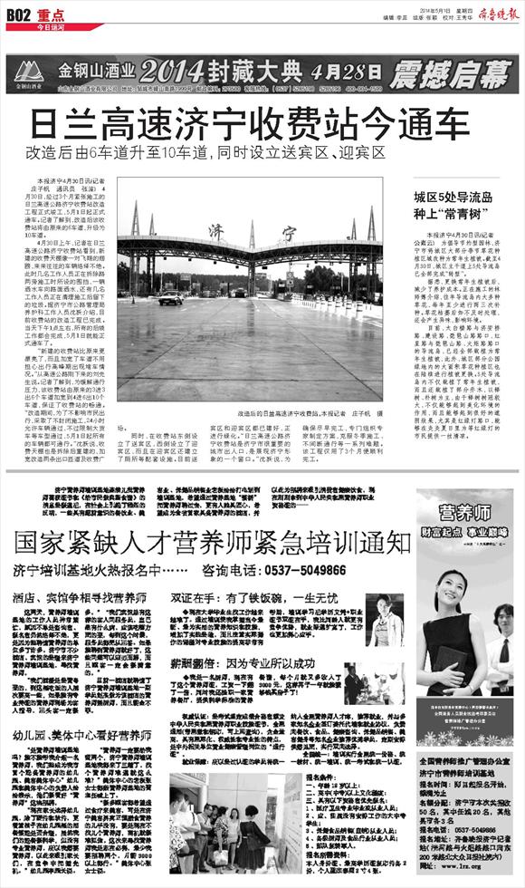 日兰高速济宁收费站今通车