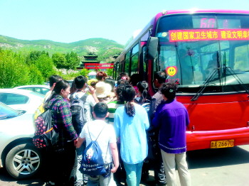 | ▲五一期间,有不少市民乘坐公交车来往市区与南山景区。