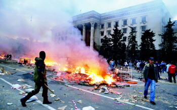 北京时间2日晚至3日晨,乌克兰混乱局势再度升级。南部城市敖德萨发生亲政府与反政府两派民众冲突,导致43人死亡。在乌政府军大举进攻东部反政府武装的情况下,南部发生的这起流血事件无疑使该国局势更加晦暗。 新华社发