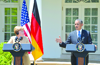美德齐说制裁但力度存疑 美国总统奥巴马2日在白宫与到访的德国总理默克尔举行会谈,双方重点讨论了不断升级的乌克兰危机。 在会谈后举行的联合记者会上,奥巴马和默克尔齐秀“一致”,警告俄罗斯不要扰乱乌克兰本月25日举行的总统选举,否则将受到更严厉的第三轮制裁。 分析人士指出,尽管奥巴马政府寻求与欧洲盟国“协调”行动,但德国政府面临本国企业反对进一步制裁俄罗斯的压力,意大利和希腊等国也抵制对俄实施新的经济制裁。美欧对俄制裁到底能走多远,目前还是未知数。 据美国《华尔街日报》2日报道,德国三分之一油气依靠俄罗斯供应,大约6200家德国公司活跃在俄罗斯,超过其他欧洲国家总和。德国政府称,如果德俄贸易关系破裂,德国将丧失多达30万个就业岗位。德国基尔世界经济研究所一项分析报告指出,如果对俄罗斯采取严厉制裁举措,德国经济增长率可能会减少多达两个百分点。而基于当前经济增长预测,这一前景可能导致这个欧洲最大经济体陷入衰退。