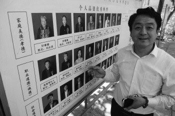 “瞧,这就是俺媳妇。”在淄川区龙泉镇渭二社区居委会,社区居民张元刚指着榜单上“诚德模范李桂兰”的照片自豪地告诉记者。“每天晚上很多居民都在这边上的小广场锻炼,都会跑过来看看四德榜。全村四十几个经营户,只有我媳妇一个人被选上了,心里真是高兴!”