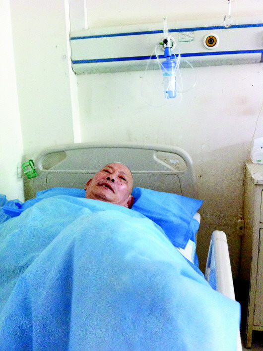 | ▲在省肿瘤医院病床上,付广利眼中含着泪水希望回家。 |