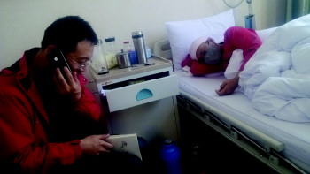 | 丈夫不离不弃,筹钱为妻子治病。官文涛 摄 |