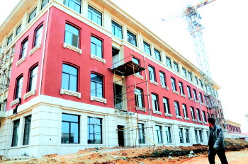 正在建设的二中新校区很有范儿。 本报记者 李泊静 摄 本报5月7日讯(记者 张晶) 二中高中部搬往高新区已成定局。目前,高新区校区主楼已进入装修阶段,6月前所有工程将完工。5月10日(本周六),烟台二中将举行校园开放日,校长王德清将与家长面对面,介绍二中高新区校区的情况以及最新的招生政策,并现场接受家长和学生的咨询。据了解,今年学校高一拟招收16个班,国际班招60人,首设创新实验班。 6日上午,记者来到高新区二中高中部校区发现,教学楼、学生宿舍楼、餐厅等建筑主体已经完成,目前正在进行装修。 一进校园就能看到竖立在湖边的钟楼,此外,艺术楼里钢琴房、画室等为学生的文体活动提供更加宽敞的场所,学生以后上文艺课,就有了专门的教室,校园氛围“高大上”。 目前,教学楼里设置了宽敞的走廊,每个教室的灯管、暖气和玻璃等设备已经安装完毕,宿舍楼整体也早已进入装修阶段,5月30日,所有工程都会完工。 据了解,二中搬迁建设新校区,是多方面综合考量的结果。根据省教育厅《普通中小学办学基本条件标准》要求,目前学校的占地和建筑面积,与基本办学标准相比有较大差距,由于周边土地限制,学校不可能通过拆迁来实现学校的扩建。 此外,二中东迁还可以全面提升普通高中更加科学的布局状态。目前,芝罘区普通高中较多,福山区、开发区、牟平区及莱山区的高中资源也基本能满足区域内子女入学需求,但是高新区随着经济发展和人口的迅速增多,还没有一所高中学校。考虑到市区高中发展的长远规划,市政府决定将二中东迁至高新区。 搬迁至高新区的二中高中部,为学校实施特色课程提供了更先进完善的场所。学校与知名高校、企业合作,建设全国一流的特色实验室,如与同济大学合作建设的“汽车工程实验室”、“建筑工程实验室”;与中国海洋大学合作建设的“海洋生物实验室”等。 据了解,5月10日(本周六),烟台二中将举行校园开放日,当天还将开设国际班专场讲座,为广大家长和学生详细介绍课程设置、师资力量、留学申请、国外大学录取、2014年招生政策等问题,家长可以进行现场咨询。 记者了解到,今年二中除了继续在芝罘区招生以外,还将在另外五区进行招生,但目前芝罘区招生仍占绝大部分。 家长 离家远,担心孩子不习惯 “谁家不是就这么一个孩子,上学从来没有离开家,这么一下子就住校了,我们都有点舍不得。”二中初四的家长李女士说,每天晚上接孩子回来后,还能和他说会儿话,沟通一下今天的学习情况,孩子想吃什么也能给做点。如果搬到高新区的话,就不能每天都见到了。 也有的家长表示,孩子没离过家,家长在孩子身边时还可以督促一下学习,住校了,就不知道孩子的学习状况了,担心孩子的自制力。 学校 既省时间又锻炼孩子 针对此前家长的疑问,校方回应称,高中生三年离家住校,不仅可以节省时间,将时间用在学习上,还可以培养学生独立生活和自我管理的能力,和同龄人生活在一起,也可以锻炼人际交往、沟通和团队能力。