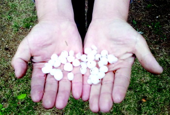 7日上午11点35分,在莱山区迎春大街附近,天空突降樱桃大小的冰雹。本报记者 蒋大伟 摄