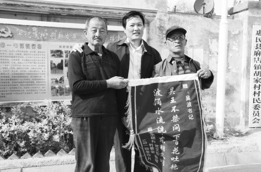 本报5月7日讯(记者 王文彬) 7日上午,由省人社厅臧长春主任带队的省考核组来到惠民县麻店镇东胡村,对驻村第一书记吴波一年的工作成绩进行考核。离别之际,百姓们送上了锦旗一幅,以表达对吴波的感激。 据了解,省委政法委派驻惠民县麻店镇村庄第二、第三批驻村第一书记交接工作已经完成。即将离开这个倾注了自己心血的小村庄,吴波的心里满是不舍。 “非常感谢村民对我这一年工作的肯定,第二批第一书记有着承上启下的作用,充分发挥好换血的功能。”吴波一开口,浓重的惠民口音让记者微微有些惊讶,“我刚来的时候,村里老人可以说是‘冬天晒太阳、夏天乘阴凉、活动无场所、娱乐没地方’。为了彻底解决这个问题,经过多方考察后,村里修建了一所老年活动中心,同时在活动中心开设了书屋,不但解决了老年人的活动问题,而且还让孩子们在课余时间有所去处。” 一年的时间,东胡村的村貌已经有了脱胎换骨的变化。由原来下雨没法进村到现在出家门脚不沾泥;由早先村子垃圾乱堆乱放到现在村子的干净整洁。现在东胡村配备卫生保洁队伍,为每户配发绿色清洁垃圾回收桶,由专职人员负责垃圾处理工作。东吴村从早先的落后到现在“五通十有”,这些都凝聚了第一书记的心血。 “在吴书记离别之际,我们代表全体村民送上这面锦旗,感谢他这一年来为村子里不辞辛苦、任劳任怨地付出。”村书记胡长增说。
