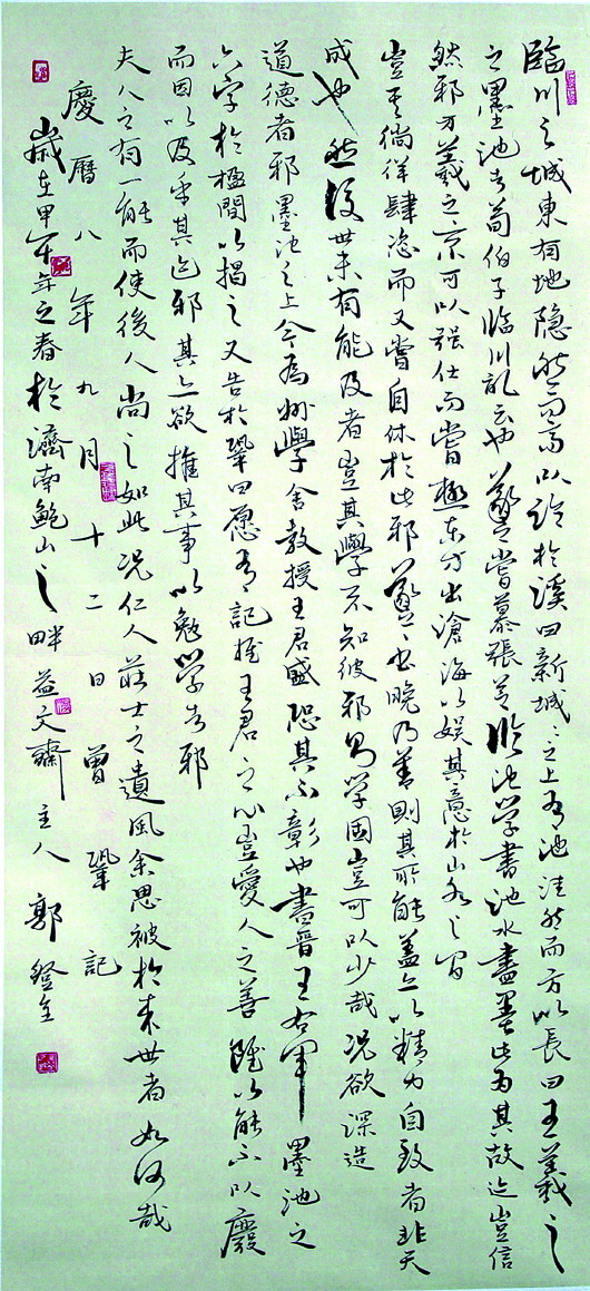 本报5月8日讯(记者 修从涛) 为弘扬传统文化,构建和谐园区,近日,由济南高新区工委宣传部主办,中国书法学术研究会承办,山东三希堂书画院、高新区文化馆、高新区书法家协会等多家单位协办的“圆梦中国,和谐高新”中国书法学术研究会第二次济南学术研讨会暨书画展览在高新区文化馆举行,数百幅书法绘画作品展现了济南高新区在经济建设、政治建设、文化建设、环境建设等方面取得的巨大成就。 研讨会上,多位书法学术界专家学者围绕书法传承进步与发展的主题作了专题发言和现场交流。来自济南、淄博、聊城,以及广东、江苏、河北、陕西、黑龙江等地60余位知名书画家和书法爱好者的120余幅作品也参与了展览。活动现场同时还举行了本次活动的邮政纪念封发行仪式。据了解,展览活动从4月27日持续到5月12日。 此外,由济南高新区总工会、高新区工委宣传部主办的高新区“五一”职工书画摄影作品展也已于近日在高新区文化馆开幕。这次职工书画摄影作品展共有书法作品44幅,绘画作品26幅,摄影作品82幅,约稿作品15幅。市民可于每天9点至17点(双休日正常展览)前往参观。 据了解,在4月30日-5月18日展览期间参加展览的市民可在文化馆“第一展览厅”对评委组确定的30幅入围作品进行大众投票,评委组将在5月19日-23日统计投票结果,并公布获奖作品名次。 中国书法学术研究会济南研讨会书画展作品选登: