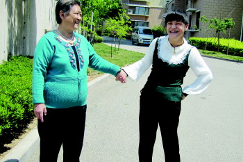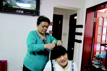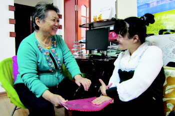 文/片 本报记者 李珍梅 对脑瘫女儿倍加珍爱、当启蒙老师并陪她自学……经过23年的坚持,女儿考取了残疾人大学。将女儿呵护成才,75岁的袁玉盛说,只要她还健康,她永远都会牵着孩子的手。 喂饭梳头穿衣,七旬妈妈照料脑瘫女儿 8日中午11点多,在李沧区中崂路袁玉盛的家里,袁玉盛正在细心地给女儿喂饭。她撕下一小片馒头,夹点蔬菜和肉丝放在上面,然后卷起来,送到女儿嘴边。吃的饭菜不能太热、太凉。“孩子手脚都不方便,吃饭、穿衣都需要照顾。”说起这些,75岁的袁玉盛脸上挂着从容的笑容。 袁玉盛育有5个儿女,最小的女儿伊建萍,1974年出生在青海。当时袁玉盛夫妻都在青海工作,条件十分艰苦,早产加上高原缺氧,使得伊建萍的脑部发育不良,患上了脑瘫,肢体一级残疾。 “与健康的孩子比,萍萍出生就遭遇‘不公平’。但我从来没想过要放弃她。”袁玉盛说,在当时的条件和环境下,孩子的病情确实给她及家庭带来了不少压力。但是,家人从来没有让萍萍受一点委屈。 因为萍萍的手和脚都不灵便,吃饭、梳头、穿衣等都需要母亲照顾。在平日的生活中,袁玉盛对小女儿萍萍付出了更多的精力。 8日吃完午饭,袁玉盛又小心地给女儿喂樱桃。因为萍萍无法把核吐出来,袁玉盛都是先把樱桃核抠出来,然后再送到萍萍嘴里。 陪着女儿自学,圆女儿的上学梦 不仅在生活中细心照料脑瘫女儿,最令人感动和肃然起敬的是,这位母亲坚持帮女儿完成了一个梦想:上学。 九岁时,萍萍跟着奶奶和三姐回到了青岛。那时,萍萍每天都趴在窗台旁,看到家门口公交车站背着书包去上学的小朋友时,就特别羡慕。得知女儿的愿望,袁玉盛将萍萍送到一所小学,想让她做一名旁听生。但看到伊建萍行动无法自理,话更是说不清楚,校领导拒绝了袁玉盛的请求。 为了不让伊建萍成为废人,袁玉盛买来书本当起了她的启蒙老师。后来又买了一台收音机,让她了解外面的世界。经过23年的执着和坚持,在妈妈和家人的帮助下,伊建萍自学成才,爱写文章,还获得了很多奖励证书。2005年,她考取了电大残疾人教育学院。 萍萍上大学三年,在母亲的陪伴下,一节面授课都没有落下。萍萍每周有三节面授课,袁玉盛每次都陪着。因为路途比较远,加上萍萍准备时间长,袁玉盛早晨4点多就要起床。到学校后,女儿在教室里上课,袁玉盛则在走廊里等候。冬天天冷,学校的老师看不下去了,总会邀请袁玉盛去办公室坐着。 求学三年,萍萍难忘母亲对她的教诲。“我们每次坐公交车去上学,父母都教我,不要别人让座。因为别人上了一天班,好不容易有个座位能坐着。”萍萍记得很清楚,母亲专门做了一个座垫,一上公交车,就把座垫放在司机旁边的一个空地,让萍萍坐着。 传递乐观坚强,大家庭博爱满堂 袁玉盛的家庭虽然有不幸,但她却把不幸变成了有幸。 在与袁妈妈的聊天中,说起一路走来受过的苦和累,袁玉盛没有丝毫抱怨,更多地表现出坚强和乐观。在袁玉盛博爱坚毅的性格影响下,萍萍也成长为一个坚强不屈乐观向上的人。同样,这个上上下下有着二十多口人的大家庭,也充满了团结和爱。 采访中,萍萍的幽默感不时地体现,她笑着称母亲是“胖老太”,“现在跟我们不在一个频率上”,逗得袁玉盛开心地笑。 “我的家庭是一个和善、团结的大家庭。全家人都是发自内心地爱护她,对她好。”袁玉盛说,她的大女儿和儿子,儿女的孩子们,都倍加呵护萍萍。 除了陪伴残疾女儿成才,袁玉盛还细心照料家中94岁的老母亲。 很多人都佩服袁玉盛的坚强和乐观。但袁玉盛认为,萍萍是她生的,她要为女儿的一生负责,不能因为女儿有残疾就为社会增加负担。“我们能做到的一定要自己去做,因为社会上还有更多的人需要帮助。” “我感谢妈妈给了我生命,让我懂得了什么是爱,让我懂得感恩,远离抱怨。”萍萍说话语气有点慢,但眼睛里闪着泪光。年近40岁的她像个小孩一样,深深地亲吻母亲的脸。