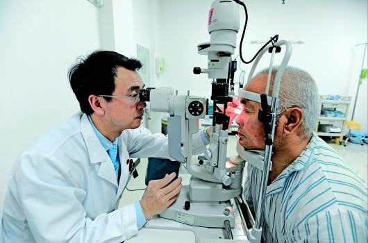 | 婴幼儿角膜移植最好给年龄相仿的患者,但成人角膜常年处于供不应求的状态。图为11日,一名做完角膜移植手术的患者在诊室复查。 本报记者 张晓鹏 摄 |