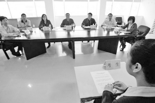 | 深圳聘任制公务员面试现场,考生面对考官压力重重。(资料片) |