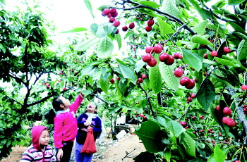 本报济宁5月11日讯(记者 胡祥东) 11日上午,雨后的樱桃园空气格外清新。红彤彤的樱桃在雨水的洗涤后,挂满雨珠,显得更有亮泽。当日,百余名市民在邹城看庄镇樱桃基地畅享采摘之乐。 满载百余名市民的两辆大巴刚开入目的地,采摘的市民看到车窗外挂满樱桃的樱桃树,难掩心中的兴奋。“你看这就是樱桃树,红彤彤的樱桃挂在树上真好看,以前还真没有见过。”不少没见过樱桃树的市民高兴地喊道。 多数来采摘的市民以家庭为单位。手拿樱桃,拍照记录幸福瞬间成为了樱桃园最常见的画面。“今天正好是母亲节,带着爸妈一块出来采摘,一方面给妈妈过节,另一方面一家人一起出来采摘也热热闹闹。”市民张女士高兴的说。记者发现,其中,人数最多的一个家庭达到10个人。 记者了解,不少来采摘的市民是奔着有机樱桃来的。正在采摘大樱桃的王先生告诉记者,“在这里采摘的樱桃就是比在外面买的甜,而且品相也好。关键是有机樱桃,不用担心农药残留,更安全。”由于是有机樱桃没有喷洒任何化学农药,不少市民直接摘下樱桃就往嘴里放。“这樱桃都不用洗,很干净。我们都是直接摘了吃。”樱桃园负责人赵祥平说。 不市民在采摘完樱桃后,又买了不少樱桃带回家。“看着这么好的樱桃就忍不住想摘,一下子就摘多了。我们这次一共摘了11斤多,准备带回去自己吃一点,再送给朋友些。”市民刘先生说,毕竟有机樱桃在市面上很少见到。 为方便市民采摘,本报将于本周六再次举办机樱桃采摘活动。将提供专门巴士,让你带着家人一起去金山岭上采摘有机大樱桃。同时,为方便没有时间前往采摘的市民吃上新鲜的大樱桃,市民也可拨打本报采摘、订购咨询电话:2350110,进行订购。