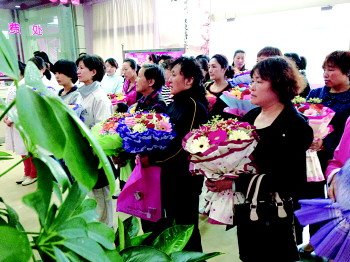 | 母亲们领到康乃馨。本报见习记者 齐兴 摄 |