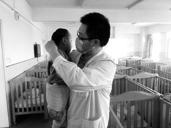 工作琐碎、重复,每天换洗上百块尿布 准备报考助理医师 考上了也不想离开 出生于1990年的张珂,是家中的独生子,2012年从山东医专毕业后,来到福利院上班,是福利院唯一的男保育员。张珂性格有些腼腆,只是默默地做着手中的事,话不多。 最近几天,张珂正忙着复习,准备参加助理医师资格考试。对于大学时所学的医学知识,张珂不想浪费掉。而除了自己学习,福利院每隔一段时间也会组织幼儿和老人护理培训,提高保育员们的技能水平。 保育员的工作琐碎、枯燥,张珂曾有些同事无法继续这种生活,选择辞职离开了。张珂周围,同样存在异样的眼光,有时候和朋友出去玩,他们总会问他身上是什么味。“在福利院里和孩子们呆久了,有一股特殊的味道,我自己闻不到。”张珂说,有时候去济南培训,周围就自己一个男的,那种感觉也很不好受。但尽管如此,张珂并没有觉得害羞,“这只是人们的理解不同,随他们怎么想。” 而对这次复习报考助理医师,张珂说即使考过了,他也没想过离开。“要是有机会,我更愿意在福利院里当医生,既能从事大学时所学专业,又能和孩子们在一起。” 6日下午2点半,济宁市儿童福利院三楼幼儿室的孩子们陆续睡醒了,有的“啊啊啊”的说着无人能懂的话,有的独自玩着手指头,还有的正站在婴儿车里,睁大双眼盯着张珂的一举一动。 房间另一头,张珂和另一位女保育员正在对孩子们挨个检查并更换尿布。张珂所在的是脑瘫组,共31个孩子,只有个别孩子肢体活动自如,其他的生活完全不能自理。来到一张小床旁,张珂拿过干净尿布,脱下孩子的衣服换好,把有污渍的放到一旁的水桶里,转身又来到另一张小床旁,重复同样的动作。一遍遍弯腰,不一会儿,这位身高一米八的小伙子,额头上就冒出了汗珠。这些孩子24小时离不开人,张珂今天早班,从上午8点半到下午4点半,每个孩子要换三四次尿布,一天下来,换洗的尿布就有上百块。 “当时听说这里招人,就来应聘了,并不知道具体做什么工作。”换完尿布、倒掉垃圾,再把孩子们的脏衣服放进洗衣机里,张珂一看地上有些灰尘,就又开始擦起了地,忙活了一个半小时也没歇下来。